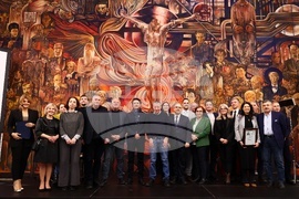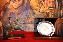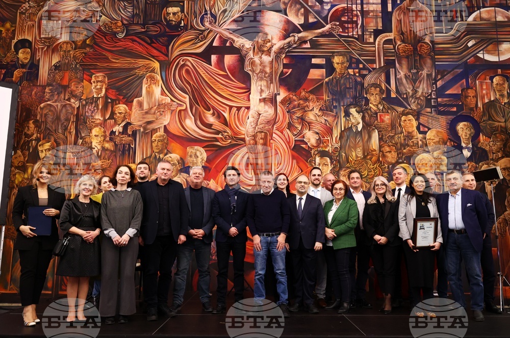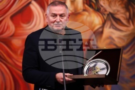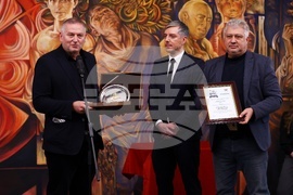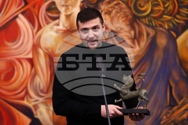 София (10 декември 2024) Откриване на Петдесет и първия Софийски международен панаир на книгата се провежда в зала 7 на Националния дворец на културата (НДК). Отличието за издателски проект с най-голяма обществена значимост се присъжда на „Градинарят и смъртта” на Георги Господинов (вляво) от Издателство „Жанет 45” - Красимир Лозанов (вдясно).