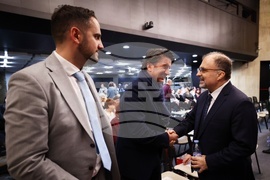 София (10 декември 2024) Откриване на Петдесет и първия Софийски международен панаир на книгата се провежда в зала 7 на Националния дворец на културата (НДК). Сред присъстващите на събитието са писателят Георги Господинов (вляво) и заместник генералният директор на Българската телеграфна агенция (БТА) Евгения Друмева (в средата), заместник-кметът по направление "Култура, образование, спорт и младежки дейности" Яна Генова (вдясно).