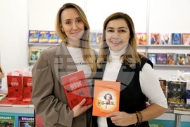 София (11 декември 2024) Петдесет и първото издание на Софийския международен панаир на книгата се провежда в Националния дворец на културата (НДК). На снимката: на щанд №339 се провежда среща с автограф с Теодора Неделчева - автор на наръчника за родителството „Ключът към твоето дете“. Представя ВИЖЪН БУКС. На снимката (от ляво надясно): Диана Стоянова и Теодора Неделчева.