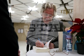 София (11 декември 2024) Петдесет и първото издание на Софийския международен панаир на книгата се провежда в Националния дворец на културата (НДК). На снимката: На щанд №313 се провежда среща с автора Александър Кертин и книгата „Македония – една история в две метафори“. Представя РИВА.