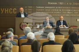 София (12 декември 2024) Президентът на Българската Си Еф Ей (CFA) асоциация и изпълнителен директор на „Експат Асет Мениджмънт" изнася публична лекция на тема „Бюджетна и икономическа политика на българската държава" в зала „Тържествена" на УНСС. В събитието участва проф. д-р Румен Брусарски (на снимката).