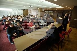 София (12 декември 2024) Президентът на Българската Си Еф Ей (CFA) асоциация и изпълнителен директор на „Експат Асет Мениджмънт" Николай Василев (на снимката) изнася публична лекция на тема „Бюджетна и икономическа политика на българската държава" в зала „Тържествена" на УНСС.