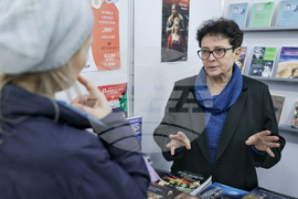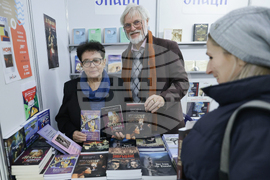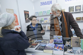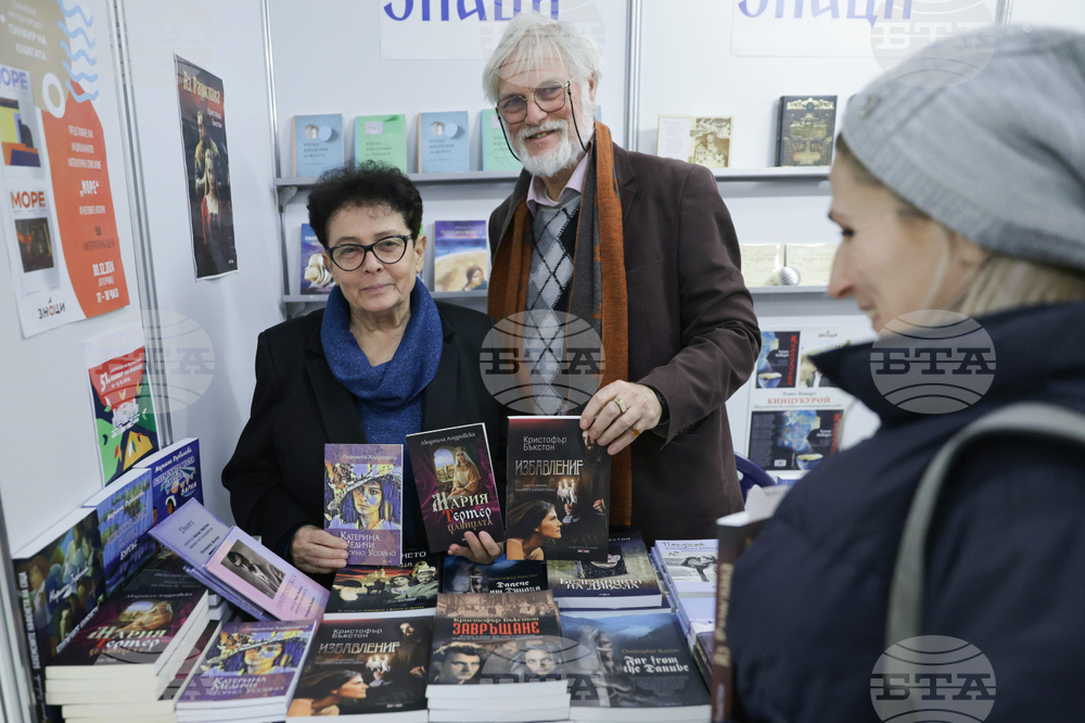 София (12 декември 2024) Петдесет и първото издание на Софийския международен панаир на книгата се провежда в Националния дворец на културата (НДК). На снимката: На щанда на Издателска къща „Знаци” писателят Людмила Андровска посреща гости и дава автографи. Присъства и преводачът и писател Кристофър Бъкстон.