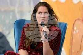 София (14 декември 2024) Петдесет и първото издание на Софийския международен панаир на книгата се провежда в Националния дворец на културата (НДК). На снимката: среща с писателката Ане Ейкхаут (на снимката) се провежда в мраморното фоайе, модератор е Георги Ангелов.