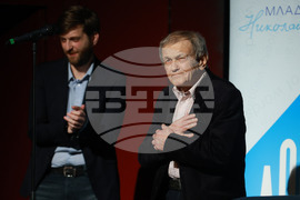 София (16 декември 2024) Книгата „Стефан Мавродиев. Играещият човек“ на актьора Стефан Мавродиев в съавторство с Огнян Панов се представя в Младежкия театър „Николай Бинев“. На снимката: актьорът Стефан Мавродиев и Огнян Панов (вдясно) съавтор на книгата.