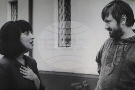 Филмът е част от портретната документална поредица на обществената телевизия „БНТ представя“. На снимката: Мая Новоселска и Теди Москов.