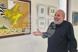 Хасково (17 декември 2024) Сдружение „Дружество на хасковските художници“ представя в градската галерия „Форум“ годишната си заключителна изложба. Подредени са общо 47 картини на 18 от членовете на дружеството. На снимката: председателят на Сдружение „Дружество на хасковските художници“ Неделчо Кучков.