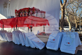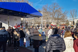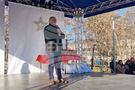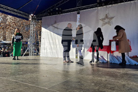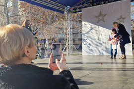 Разград (18 декември 2024) Близо сто момичета и момчета, представили достойно Разград през 2024 г. на различни конкурси, фестивали и състезания получиха награди от общината. Грамотите и финансовите стимули за успехите им бяха връчени на специална церемония на откритата сцена пред Градската коледна елха. На снимката: кметът на Община Разград Добрин Добрев.