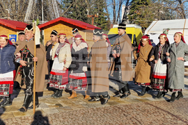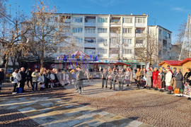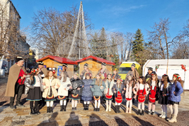 Търговище (20 декември 2024) На Игнажден изпълнителите от професионалния фолклорен ансамбъл „Мизия”, с главен художествен ръководител Любчо Василев, коледуват в центъра на Търговище. Тази година програмата бе обогатена с две коледни песни, в изпълнение на фолклорната група „Медни звънчета” от Първо основно училище „Христо Ботев”.
