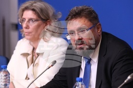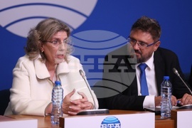 София (20 декември 2024) Националната художествена академия (НХА) предава шрифт, специално създаден за Българската телеграфна агенция (БТА). Събитието се провежда в Националния пресклуб на БТА в София. Шрифтът е разработен на база на азбучната система на кирилицата, съхранявайки традицията на Кирило-Методиевите ученици. Всички печатни и дигитални текстове, документи и материали, излизащи от БТА, вече ще имат единен облик. На снимката: председателят на Патентно ведомство на Република България Оля Димитрова и генералният директор на БТА Кирил Вълчев.