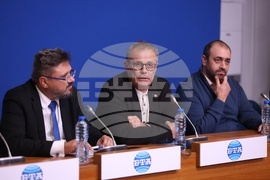 София (20 декември 2024) Националната художествена академия (НХА) предава шрифт, специално създаден за Българската телеграфна агенция (БТА). Събитието се провежда в Националния пресклуб на БТА в София. Шрифтът е разработен на база на азбучната система на кирилицата, съхранявайки традицията на Кирило-Методиевите ученици. Всички печатни и дигитални текстове, документи и материали, излизащи от БТА, вече ще имат единен облик. На снимката (от ляво надясно): генералният директор на БТА Кирил Вълчев, ректорът на НХА Георги Янков, преподавателят по „Рекламен дизайн” в НХА доц. д-р Светлин Балездров.
