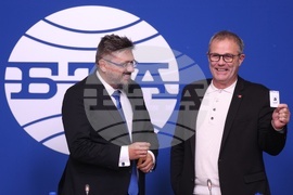 София (20 декември 2024) Националната художествена академия (НХА) предава шрифт, специално създаден за Българската телеграфна агенция (БТА). Събитието се провежда в Националния пресклуб на БТА в София. Шрифтът е разработен на база на азбучната система на кирилицата, съхранявайки традицията на Кирило-Методиевите ученици. Всички печатни и дигитални текстове, документи и материали, излизащи от БТА, вече ще имат единен облик. На снимката: генералният директор на БТА Кирил Вълчев и председателят на Патентно ведомство на Република България Оля Димитрова.