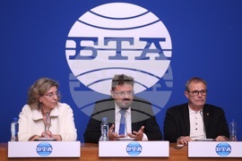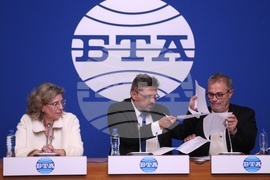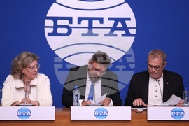 София (20 декември 2024) Националната художествена академия (НХА) предава шрифт, специално създаден за Българската телеграфна агенция (БТА). Събитието се провежда в Националния пресклуб на БТА в София. Шрифтът е разработен на база на азбучната система на кирилицата, съхранявайки традицията на Кирило-Методиевите ученици. Всички печатни и дигитални текстове, документи и материали, излизащи от БТА, вече ще имат единен облик. На снимката (от ляво надясно): председателят на Патентно ведомство на Република България Оля Димитрова, генералният директор на БТА Кирил Вълчев, ректорът на НХА Георги Янков.