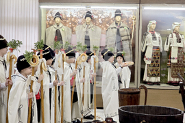 Плевен (20 декември 2024) Коледната работилница в Регионалния исторически музей (РИМ) в Плевен приключи работа. На снимката: заместник-директорът на музея д-р Димитър Петров дарява коледарите.