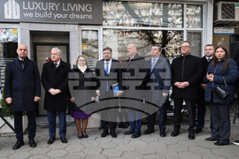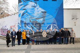 Пловдив (20 декември 2024) Министерството на външните работи на Република България, в партньорство с Община Пловдив, откри стрийт-арт проект в град Пловдив, посветен на 20-ата годишнина от членството на страната ни в НАТО. Той се намира пред сградата на трафопост „Орта Мезар“ на бул. „6-и септември“ № 142. На снимката (от ляво надясно): кметът на Пловдив Костадин Димитров, служебният министър на външните работи Иван Кондов, областният управител на Пловдив проф. Христина Янчева, генералният директор на БТА Кирил Вълчев, посланикът на САЩ в България Кенет Мертен, заместник-ръководителят на посолството на Румъния в България Каталин Радой и генералният консул на Турция в Пловдив Корхан Кюнгерю.