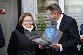 Пловдив (20 декември 2024) Министерството на външните работи на Република България, в партньорство с Община Пловдив, откри стрийт-арт проект в град Пловдив, посветен на 20-ата годишнина от членството на страната ни в НАТО. Той се намира пред сградата на трафопост „Орта Мезар“ на бул. „6-и септември“ № 142. На снимката: областният управител на Пловдив проф. Христина Янчева и генералният директор на БТА Кирил Вълчев.