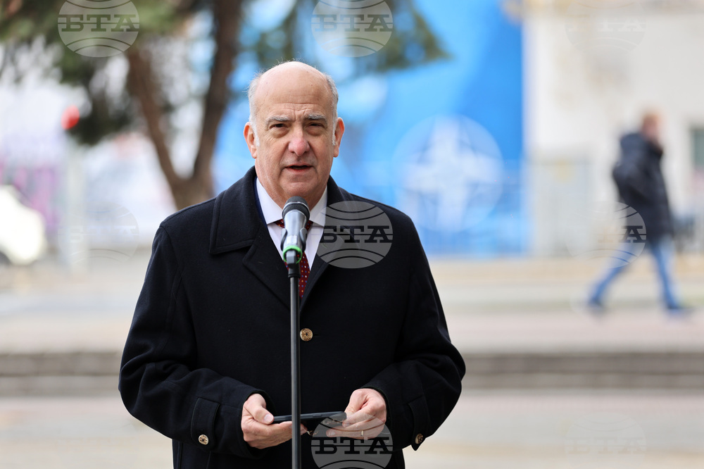 Пловдив (20 декември 2024) Министерството на външните работи на Република България, в партньорство с Община Пловдив, откри стрийт-арт проект в град Пловдив, посветен на 20-ата годишнина от членството на страната ни в НАТО. Той се намира пред сградата на трафопост „Орта Мезар“ на бул. „6-и септември“ № 142. На снимката: посланикът на САЩ в България Кенет Мертен.