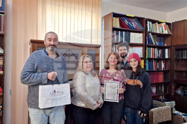 Разград (23 декември 2024) Над 300 вещи, предмети, снимки и материали са постъпили в музея в Разград в рамките на кампанията „На дарителя – с благодарност”, съобщи директорът на Регионалния исторически музей Таня Тодорова. Кампанията бе финализирана с връчване на удостоверение за дарителство на семейството на Симеон Захариев, решило и предоставило за съхранение в музея личния архив на почетния гражданин на Разград. На пресконференцията присъстваха проф. д-р Росица Ангелова, ръководител на отдел „Нова и най-нова история” и уредникът в отдел „Най-нова история” Нено Якимов. На снимката (от ляво надясно): Михаил Захариев, директорът на РИМ-Разград Таня Тодорова, Надя Захариева, Симеон и Неда - деца на Надя Захариева.