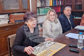 Разград (24 декември 2024) Живота в Разград през XX век е представен чрез снимки в многолистовия календар на Регионалния исторически музей. Инициативата на музея за популяризиране на движимите ценности от фондовете си, като ги представя в луксозно издание под формата на сувенирен календар е предприета преди три години. На снимката (от ляво надясно): ръководителят на отдел „Нова и най-нова история” проф. д-р Росица Ангелова, директорът на РИМ – Разград Таня Тодорова, уредникът в отдел „Най-нова история” Нено Якимов.