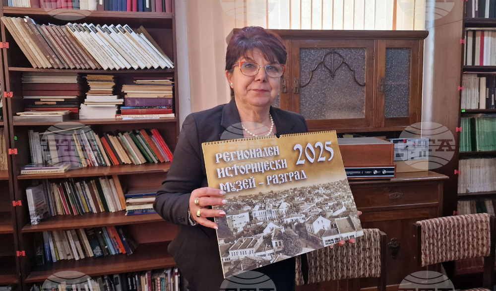 Разград (24 декември 2024) Живота в Разград през XX век е представен чрез снимки в многолистовия календар на Регионалния исторически музей. Инициативата на музея за популяризиране на движимите ценности от фондовете си, като ги представя в луксозно издание под формата на сувенирен календар е предприета преди три години. Снимка: кореспондент на БТА в Разград Садет Кърова (ПК)