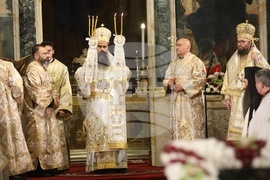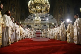София (24 декември 2024) Празничното богослужение за Рождество Христово се провежда в патриаршеската катедрала „Св. Александър Невски".