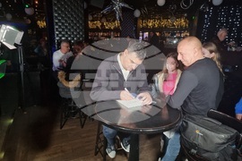 София (9 януари 2025) Волейболната легенда Владимир Николов представи автобиографичната си книга "Високо" в "София лайв клуб". Книгата е написана в съавторство с журналистката Виолета Цветкова. На снимката: Владимир Николов със семейството си.