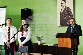 Свищов (13 януари 2025) Свищовска професионална гимназия (СПГ) „Алеко Константинов“ чества патронния си празник. В рамките на празника бе организирана и среща на училищата, носещи името на Щастливеца. На снимката: директорът на СПГ „Алеко Константинов“ инж. Веска Николова.