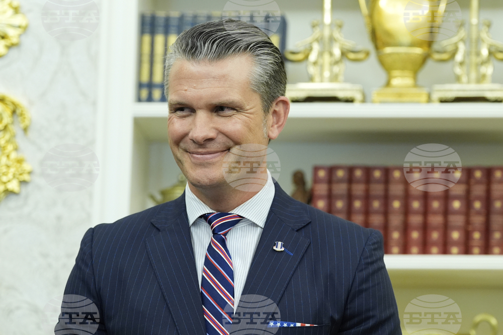 Defense Secretary Pete Hegseth listens as President Donald Trump speaks in the Oval Office of the White House, Monday, Aug. 25, 2025, in Washington. (AP Photo/Alex Brandon)