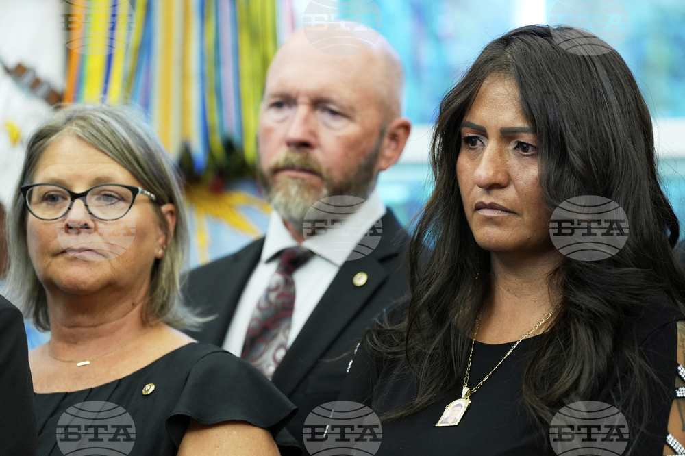 Family members of soldiers killed in Afghanistan at the attack at Abbey Gate listen as President Donald Trump speaks during an event signing a proclamation honoring the fourth anniversary of the attack, in the Oval Office of the White House, Monday, Aug. 25, 2025, in Washington. (AP Photo/Alex Brandon)