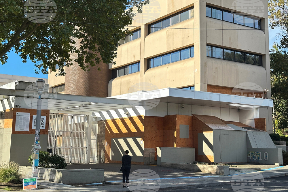 A U.S. Immigration and Customs Enforcement facility is shown on Saturday, Sept. 27, 2025 in Portland, Ore. (AP Photo/Gillian Flaccus)