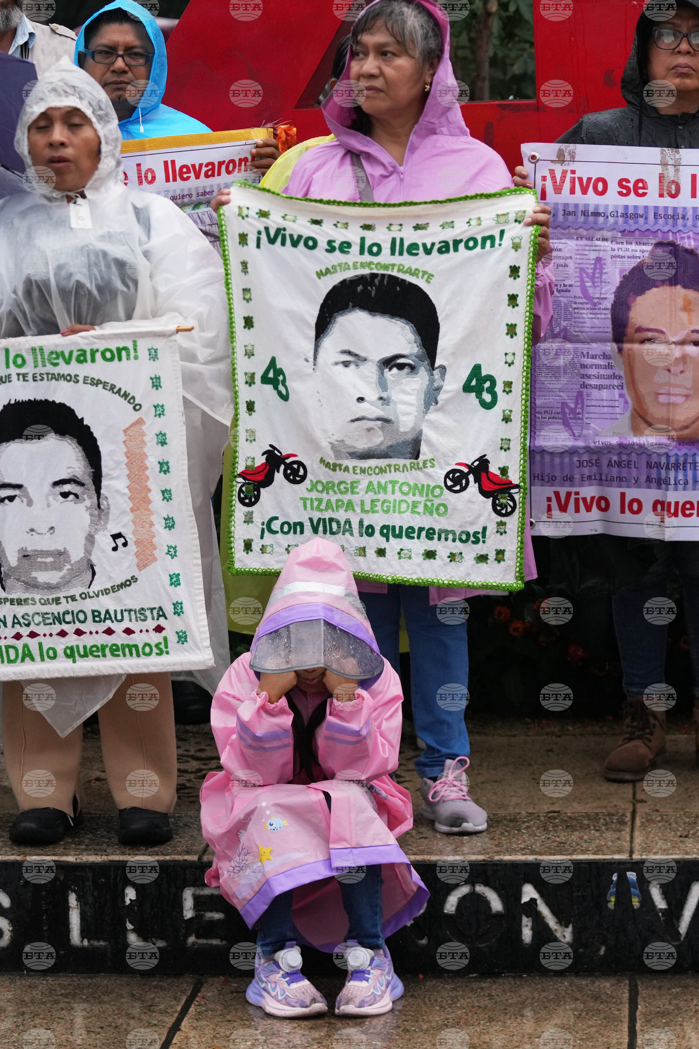 FILE - Relatives and demonstrators mark the 11th anniversary of the disappearance of 43 students from the Ayotzinapa Rural Teachers' College, in Mexico City, Sept. 26, 2025. (AP Photo/Fernando Llano, File)