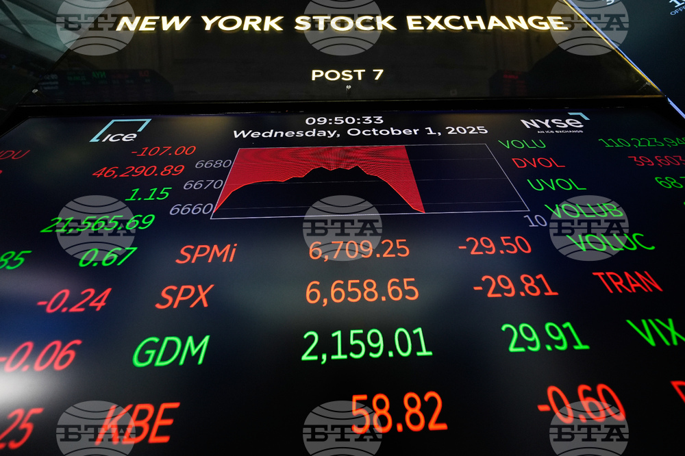 Financial information is displayed as traders work on the floor at the New York Stock Exchange in New York, Wednesday, Oct. 1, 2025. (AP Photo/Seth Wenig)