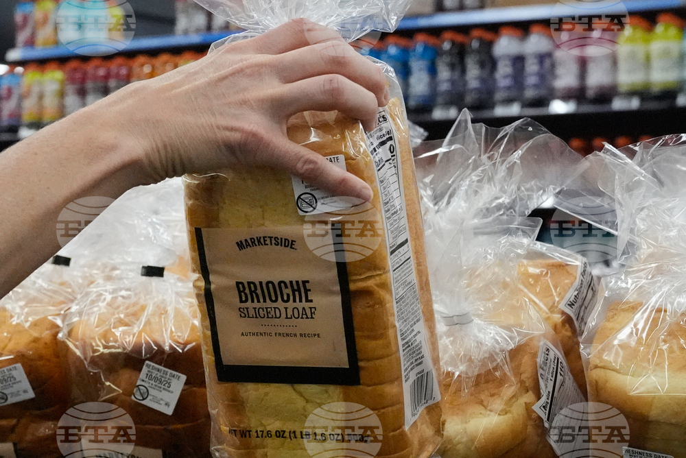 A customer reaches for a loaf of Marketside brand bread at a Walmart Neighborhood Market, Friday, Sept. 26, 2025, in Bentonville, Ark. (AP Photo/Charlie Riedel)