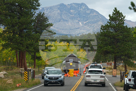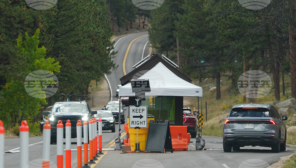 Visitors wait as a motorist turns downtown near Rocky Mountain National Park after the shutdown of the federal government, Wednesday, Oct. 1,2025, in Estes Park, Colo. (AP Photo/David Zalubowski)