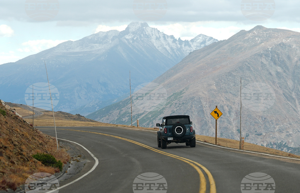 A lone utility vehicle moves along Trail Ridge Road in Rocky Mountain National Park after the shutdown of the federal government Wednesday, Oct. 1,2025, in Estes Park, Colo. (AP Photo/David Zalubowski)