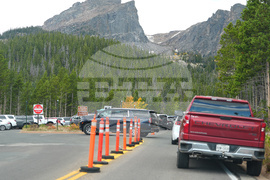 Vehicles are forced to turn back because of no parking spaces available in the lot near Bear Lake in Rocky Mountain National Park after the shutdown of the federal government Wednesday, Oct. 1,2025, in Estes Park, Colo. (AP Photo/David Zalubowski)