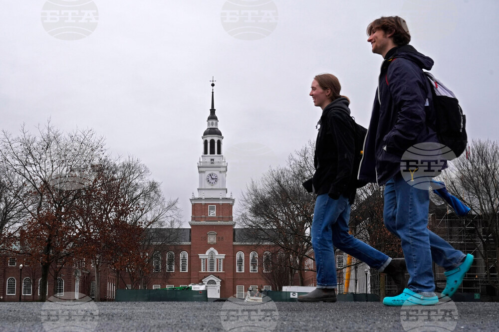 FILE - Students cross the campus of Dartmouth College, March 5, 2024, in Hanover, N.H. (AP Photo/Robert F. Bukaty, File)