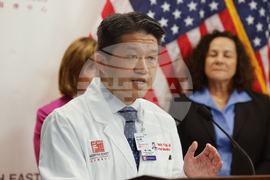 Kenneth Tai, Chief Health Officer at North East Medical Services, speaks at a press conference at North East Medical Services about the government shutdown's effect on health care access on Thursday, Oct. 2, 2025, in San Francisco. (Lea Suzuki/San Francisco Chronicle via AP)