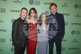 Christian Slater, from left, Rose Byrne, Mary Bronstein and Conan O'Brien attend the premiere for "If I Had Legs I'd Kick You" at Alice Tully Hall during the 63rd New York Film Festival on Thursday, Oct. 2, 2025, in New York. (Photo by Andy Kropa/Invision/AP)