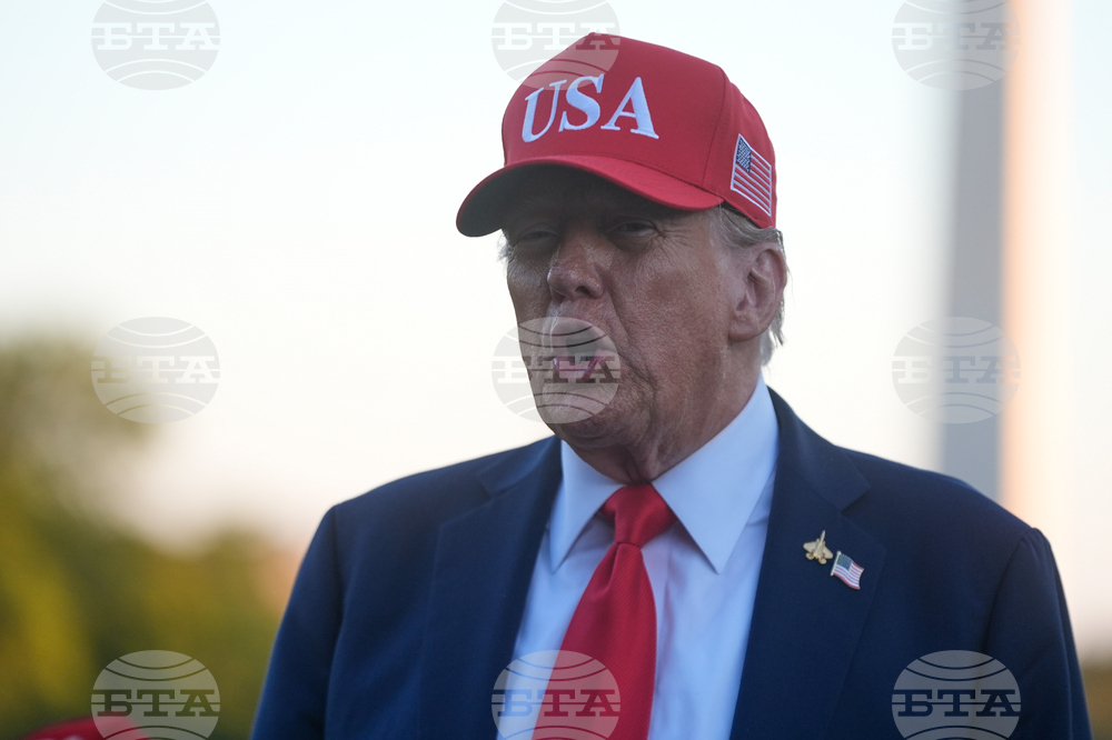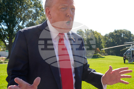President Donald Trump walks to speak to reporters before departing the White House, en route Norfolk, Va., to observe a naval sea power demonstration, Sunday, Oct. 5, 2025, in Washington. (AP Photo/Manuel Balce Ceneta)