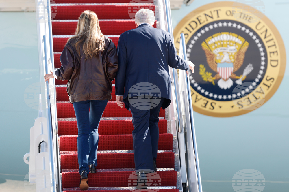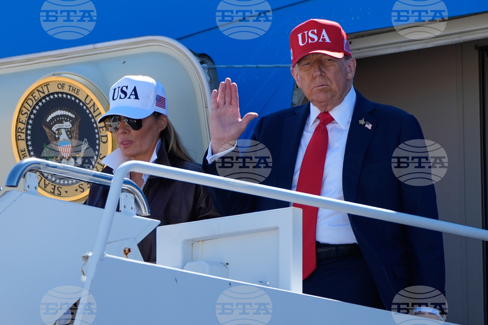 President Donald Trump and first lady Melania Trump board Air Force One, Sunday, Oct. 5, 2025, at Joint Base Andrews, Md., en route to Norfolk, Va. (AP Photo/Alex Brandon)