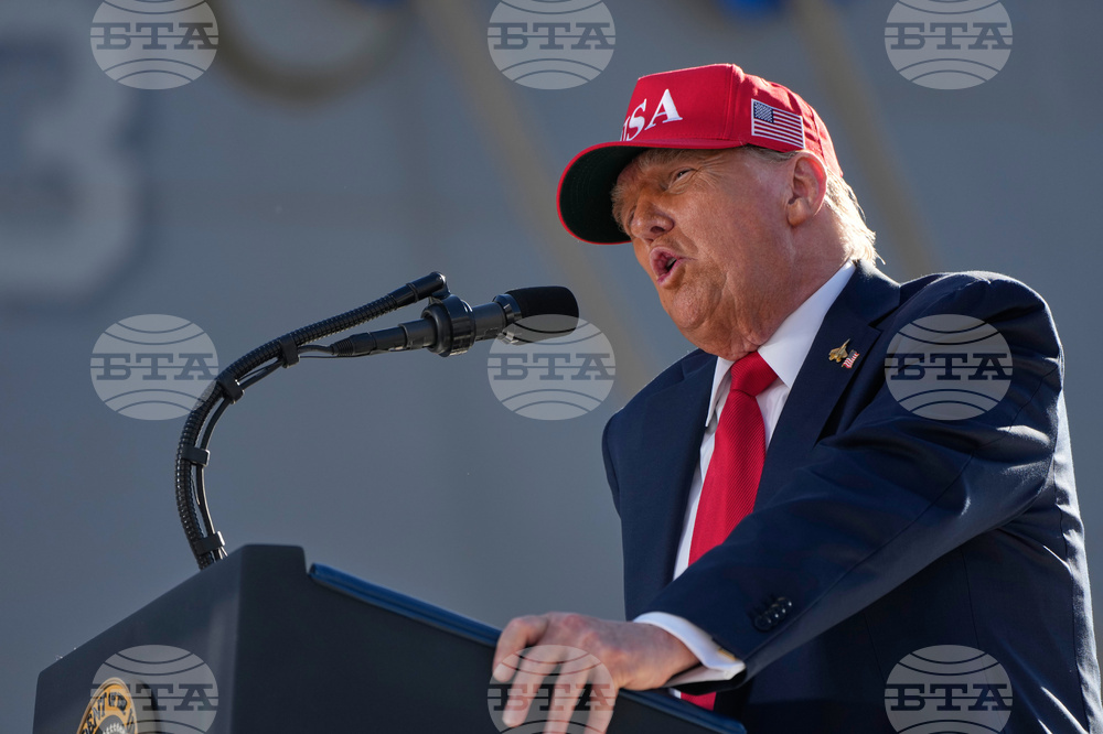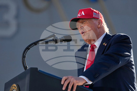 President Donald Trump speaks during a celebration for the 250th anniversary of the U.S. Navy aboard the USS Harry S. Truman at Naval Station Norfolk, Sunday Oct. 5, 2025 in Norfolk, Va. (AP Photo/Steve Helber)