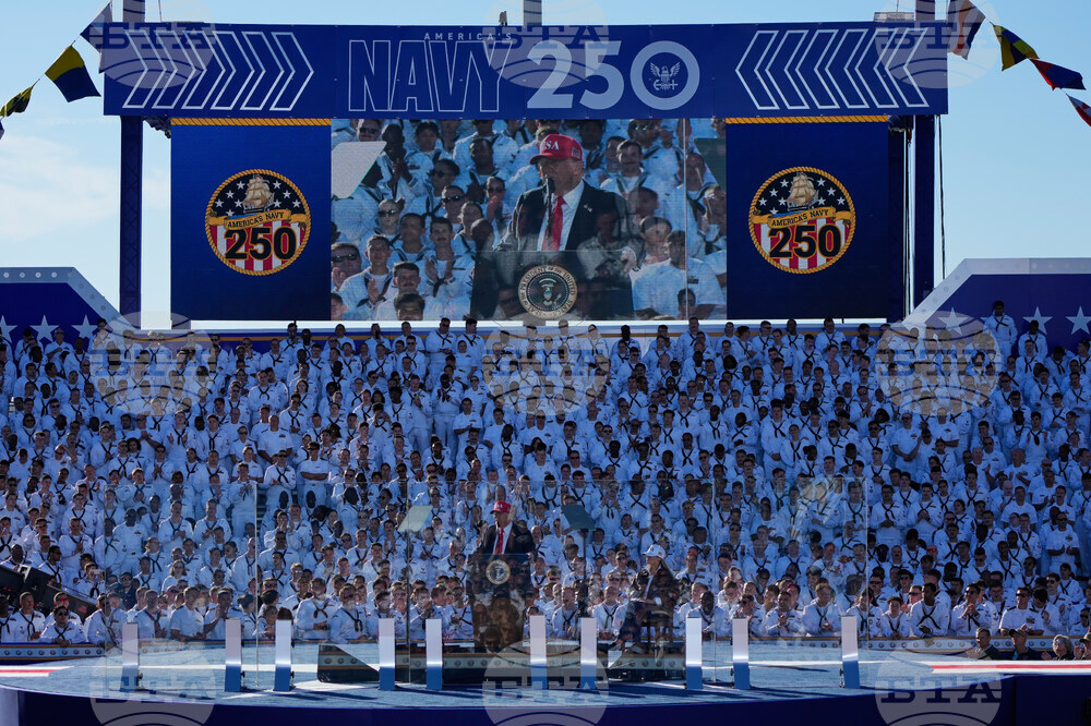 Sailors cheer as President Donald Trump speaks during a celebration for the 250th anniversary of the U.S. Navy aboard the USS Harry S. Truman at Naval Station Norfolk, Sunday Oct. 5, 2025 in Norfolk, Va. (AP Photo/Alex Brandon)