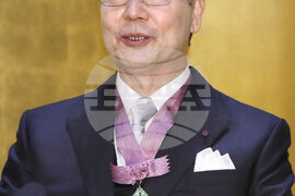 Shimon Sakaguchi speaks during a news conference after receiving an award of culture from Japan's Imperial Household Agency in Tokyo, Nov. 3, 2019. (Kyodo News via AP)