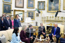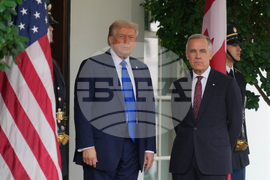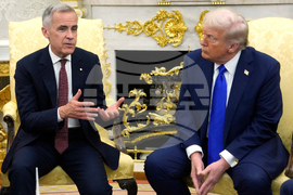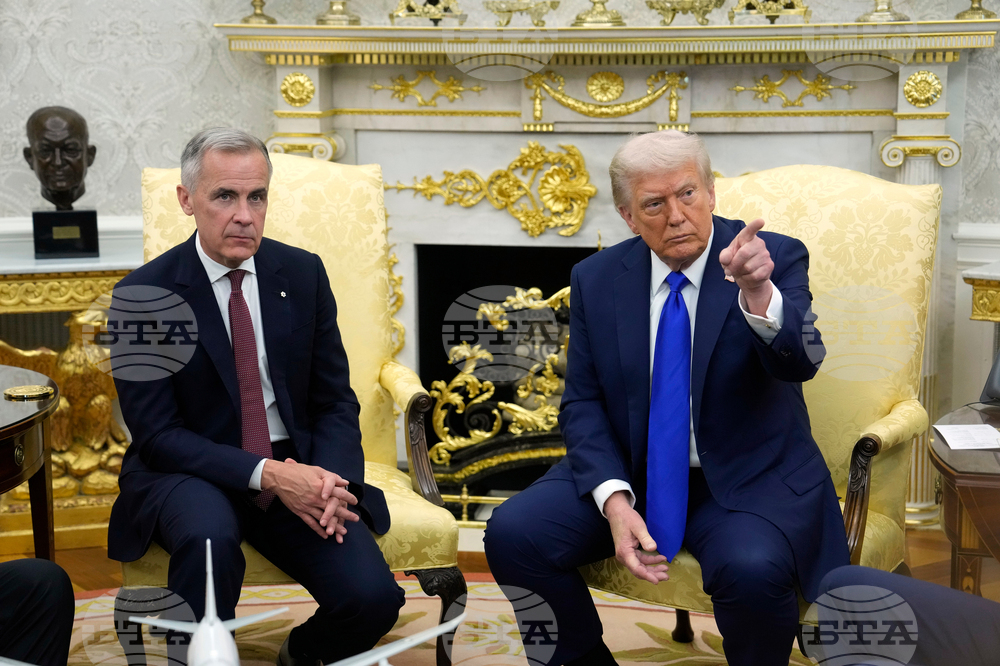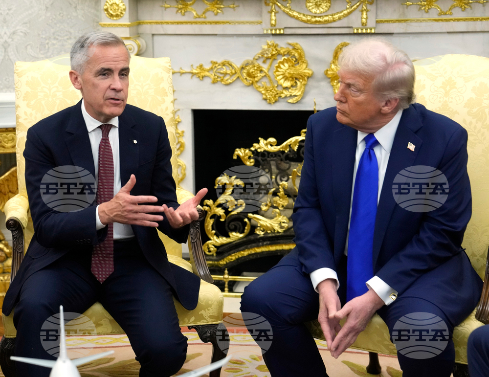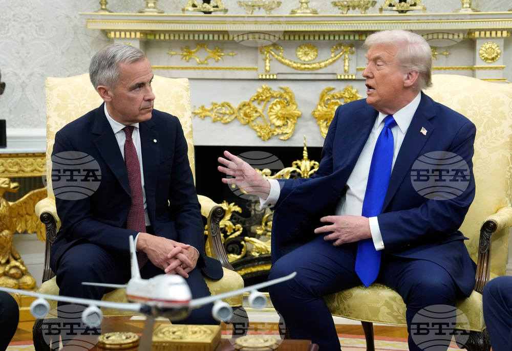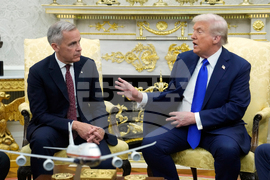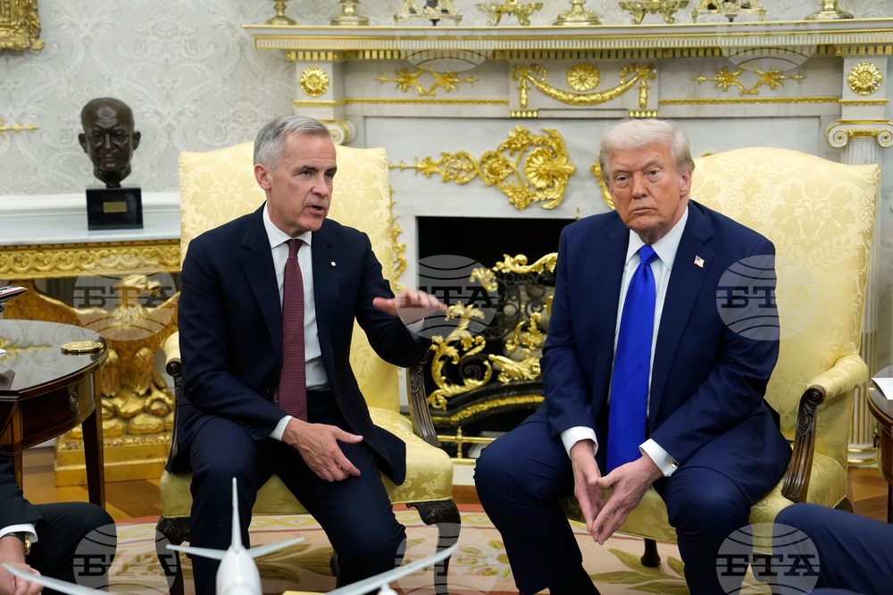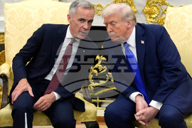 President Donald Trump welcomes Canada Prime Minister Mark Carney to the White House in Washington, Tuesday, Oct. 7, 2025. (Adrian Wyld/The Canadian Press via AP)