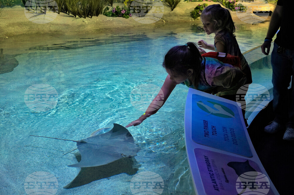 Children touch stingrays at the Mote Science Education Aquarium, Monday, Oct. 6, 2025, in Sarasota, Fla. (AP Photo/Chris O'Meara)