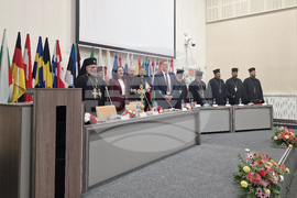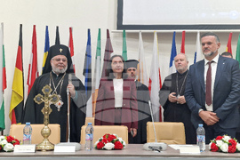 Стара Загора (7 октомври 2025) Днес и утре в зала „П. Р. Славейков“ в Община Стара Загора се провежда общата епархийска конференция на всички духовници, епархийски съветници и административни служители в Старозагорската епархия. Обсъждат се актуални административни, финансови и енорийски проблеми епархията. На снимката (от ляво надясно): Старозагорският митрополит Киприан и зам.-кметът на Община Стара Загора Надежда Чакърова.