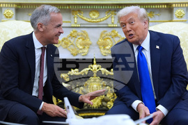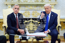 Canadian Prime Minister Mark Carney speaks during a meeting with President Donald Trump at the White House, Tuesday, Oct. 7, 2025, in Washington. (AP Photo/Evan Vucci) Washington. (AP Photo/Evan Vucci)