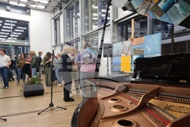 Бургас (7 октомври 2025) В Експозиционен център „Флора“ в Бургас официално бе открито шестото издание на Фестивала на младите в изкуството „Дълбокото синьо море“, който ще се проведе от 7 до 11 октомври. Фестивалът, организиран от Националната художествена академия и Община Бургас, събира млади и утвърдени творци в общо пространство за идеи, изкуство и вдъхновение. Сред официалните гости бе директорът на филиала на академията в Бургас проф. Светозар Бенчев (на снимката).