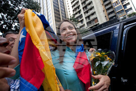 FILE - Opposition leader Maria Corina Machado greets supporters during a campaign rally for presidential candidate Edmundo Gonzalez, in Maturin, Venezuela, Saturday, July 20, 2024. (AP Photo/Matias Delacroix, File)